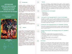 ART TECHNOLOGIES IN TEACHING MINOR LANGUAGES AS PRESERVING THE NATIONAL LANGUAGE AND CULTURE (ON THE EXAMPLE OF THE TATAR LANGUAGE)